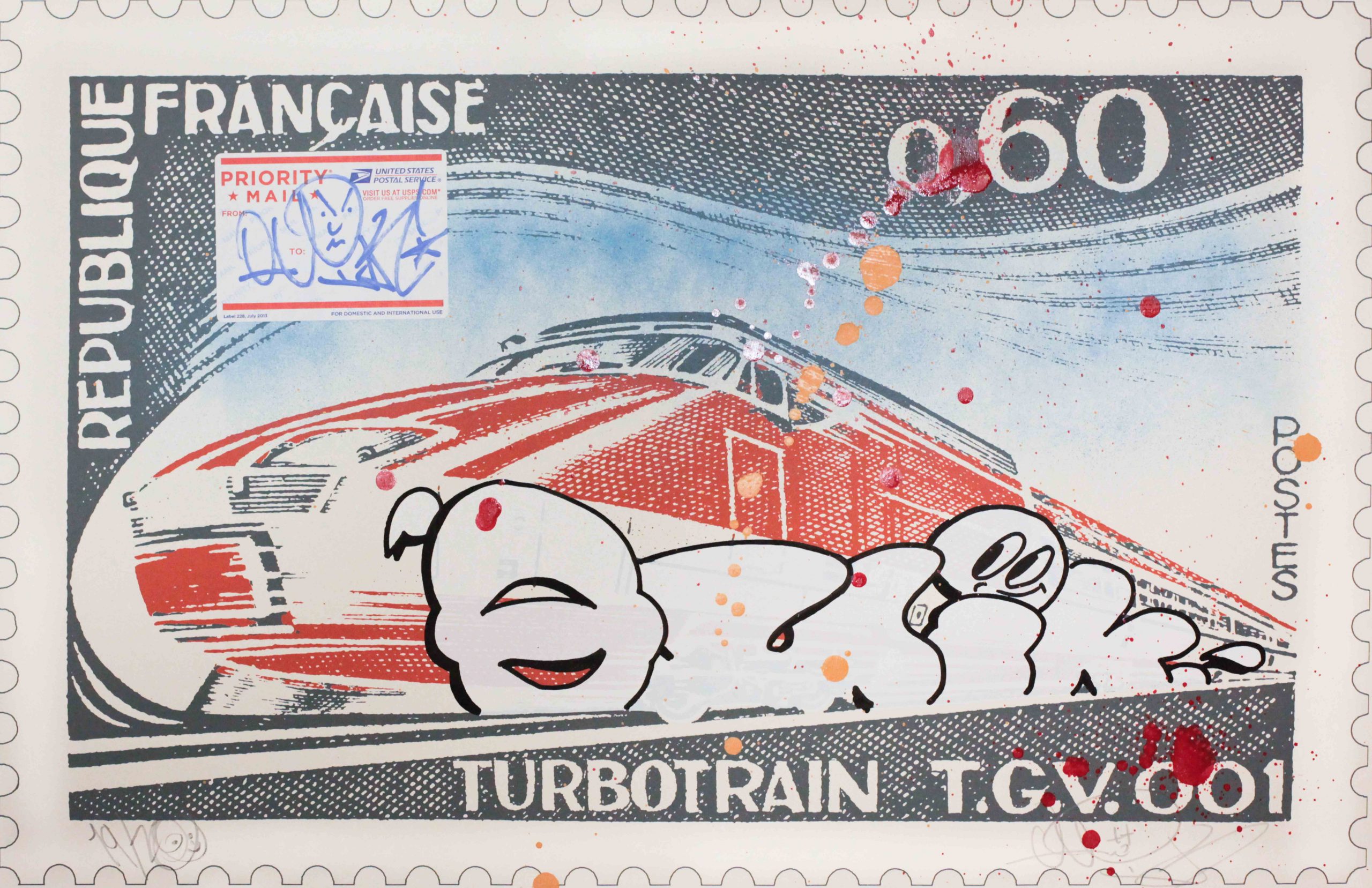 Back to the roots for Quik who enjoyed painting on a train nicely printed on a stamp.