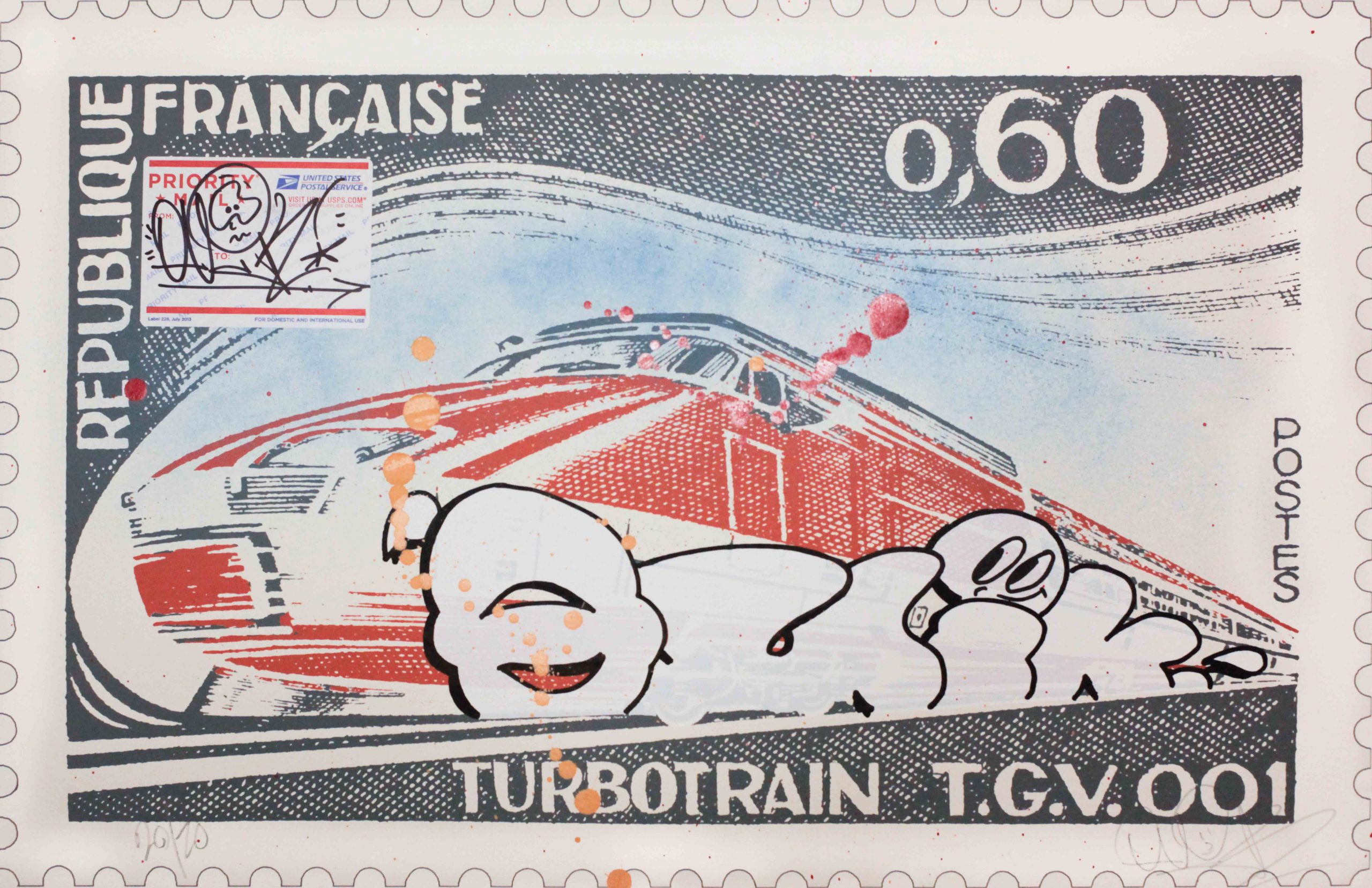 Back to the roots for Quik who enjoyed painting on a train nicely printed on a stamp.