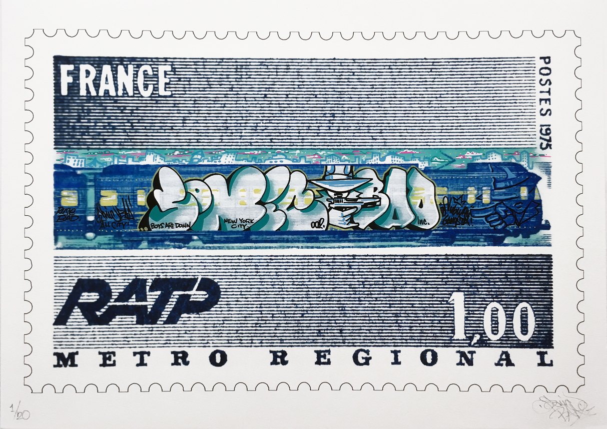 Retour aux sources pour Sonic qui aimait peindre sur des trains, désormais imprimés sur un timbre agrandi.