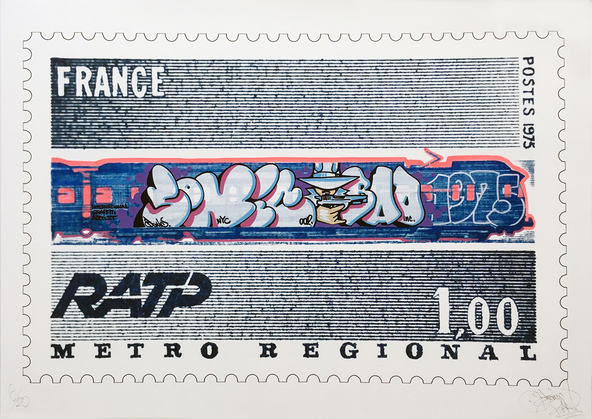 Retour aux sources pour Sonic qui aimait peindre sur des trains, désormais imprimés sur un timbre agrandi.