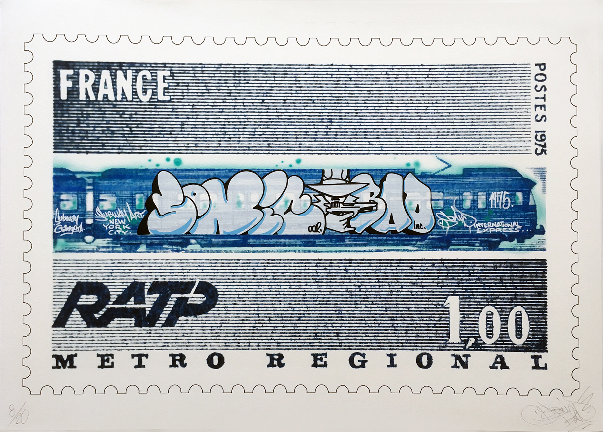 Retour aux sources pour Sonic qui aimait peindre sur des trains, désormais imprimés sur un timbre agrandi.