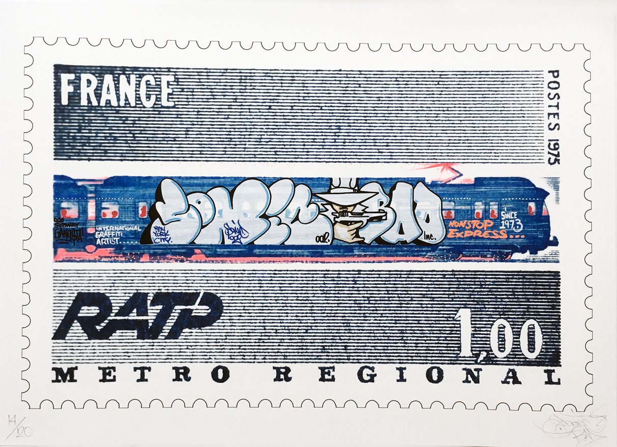 Retour aux sources pour Sonic qui aimait peindre sur des trains, désormais imprimés sur un timbre agrandi.